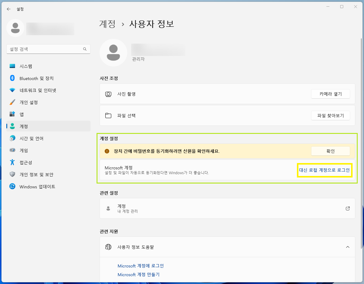 #마이크로소프트계정제거 #로컬계정으로전환방법