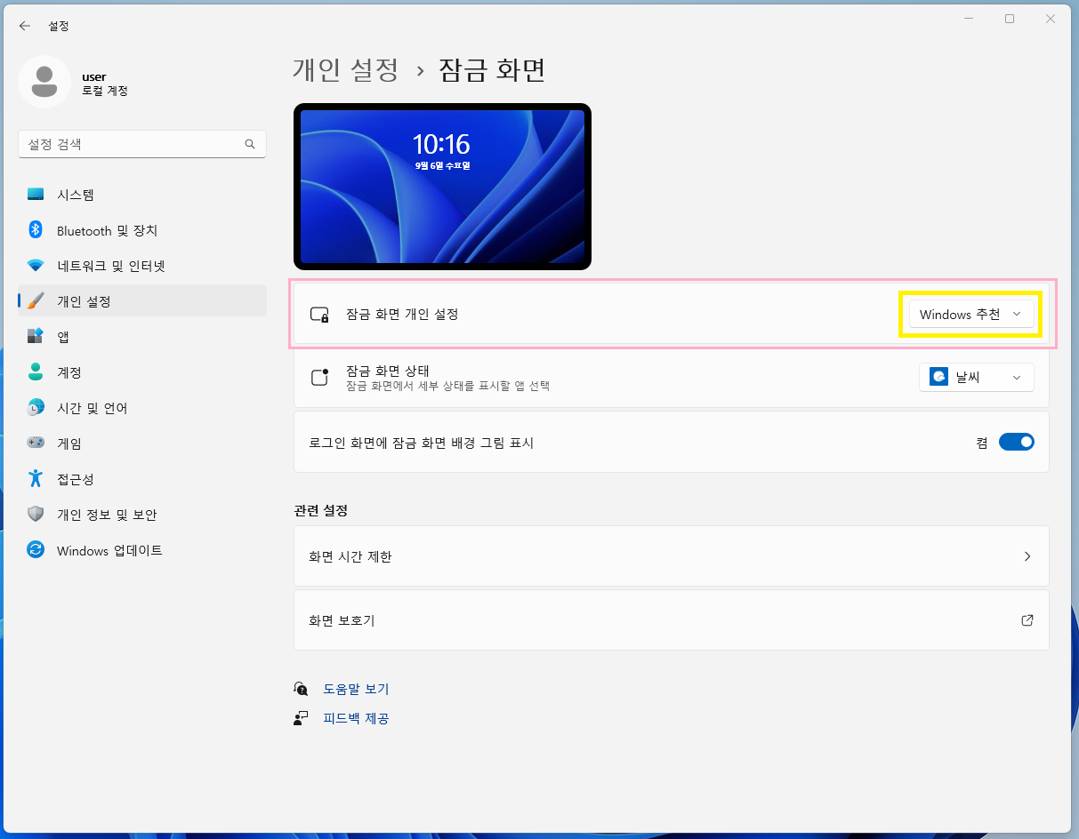 윈도우10 도 설정 화면이 거의 동일한거 같아서